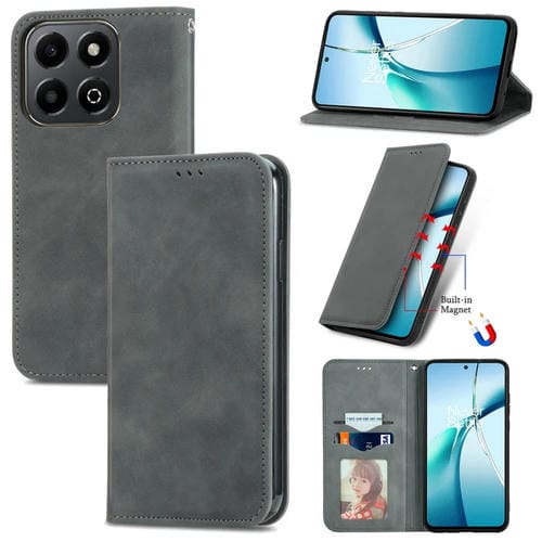 Funda de Cuero con Tapa Magnética y Tacto Retro para Honor 200 (Gris)