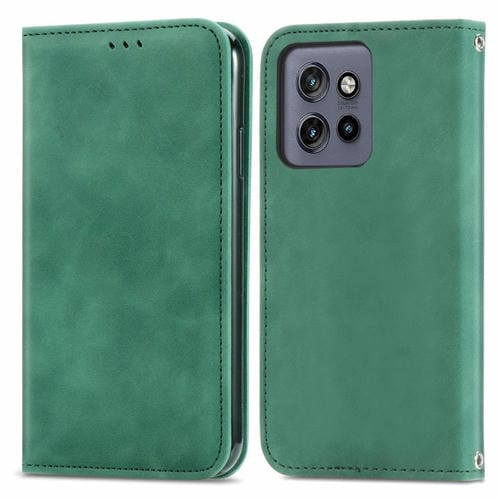 Funda de Cuero con Tapa Magnética y Tacto Retro para Motorola Edge 50 Neo (Verde)