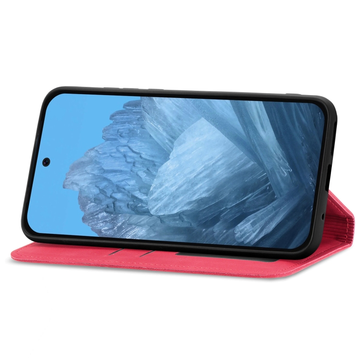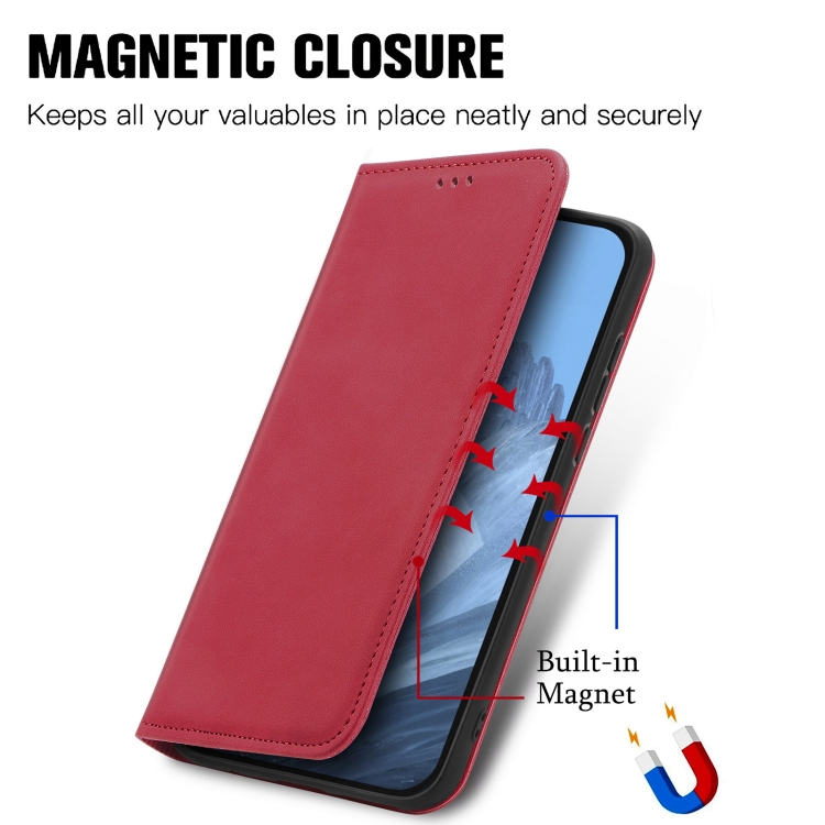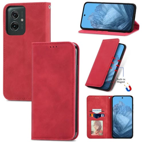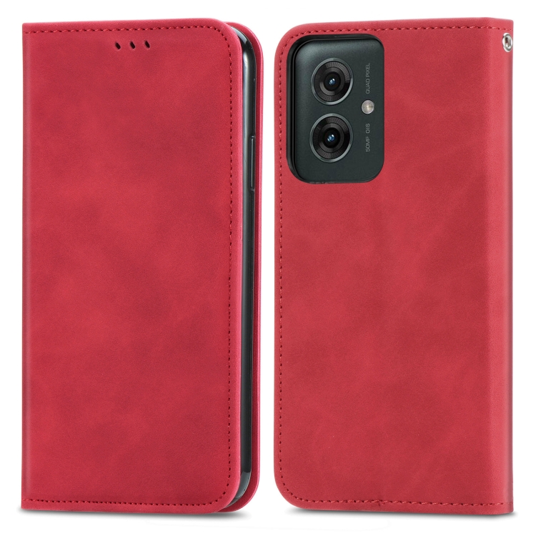 Funda de Cuero con Tapa Magnética y Tacto Retro para Motorola Moto G55 (Rojo)