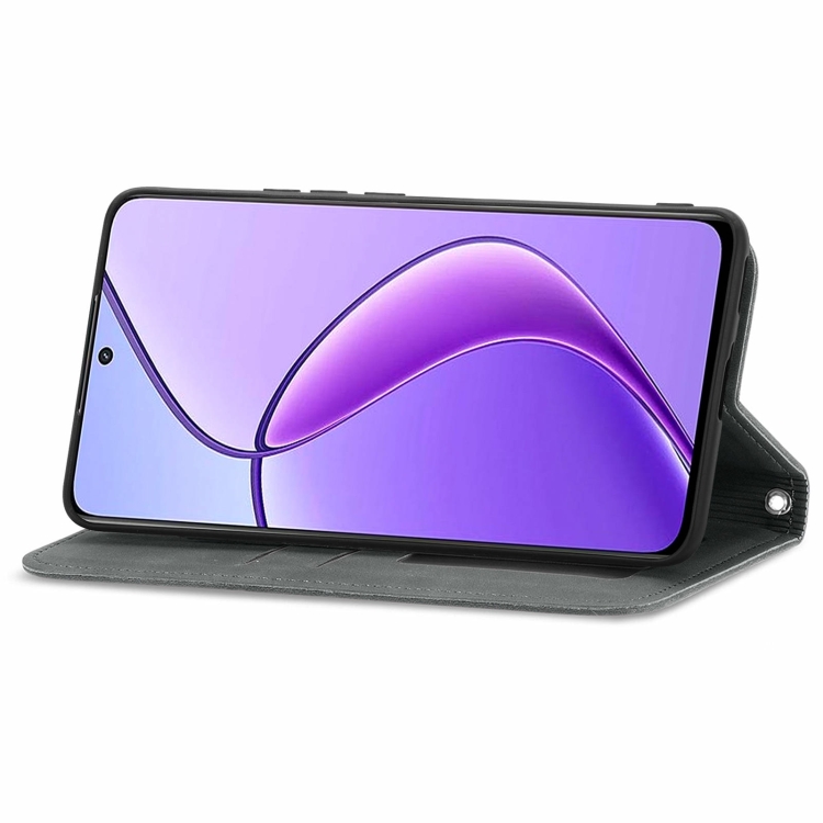 Funda de Cuero con Tapa Magnética y Tacto Retro para Oppo Reno12 F (Gris)