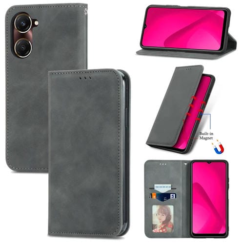 Funda de Cuero con Tapa Magnética y Tacto Retro para Vivo Y37 (Gris)