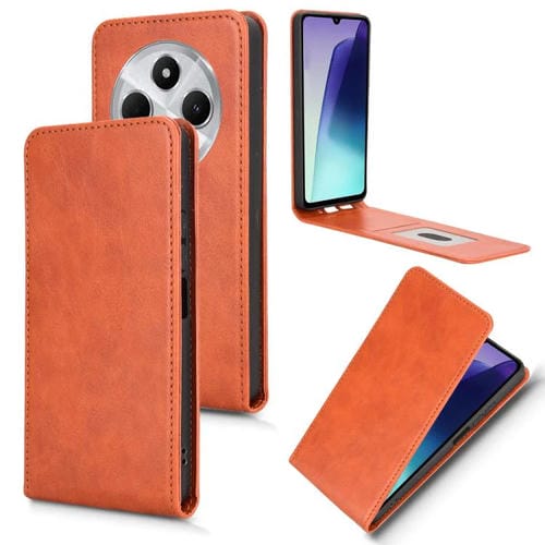 Funda de Cuero con Tapa Vertical Magnética para Redmi 14C 4G / 14R 5G (Marrón)
