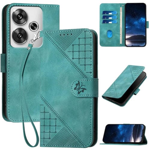 Funda de Cuero con Tapa y Cordón para Redmi Turbo 3 Yx0080 con Diseño En Relieve de Mariposas y Cuadrícula (Azul Claro)