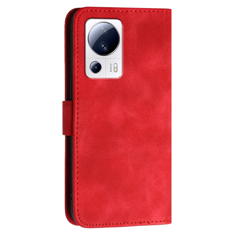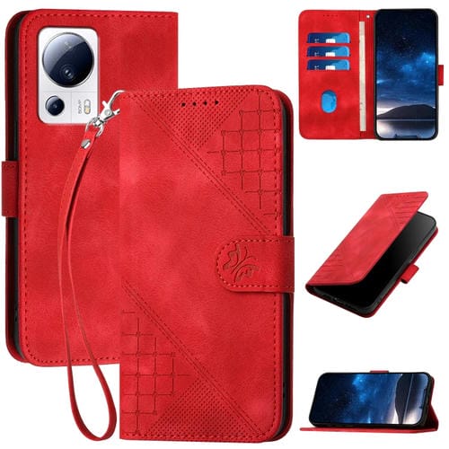 Funda de Cuero con Tapa y Cordón para Xiaomi Civi 2 Yx0080 con Diseño En Relieve de Mariposas y Cuadrícula (Rojo)