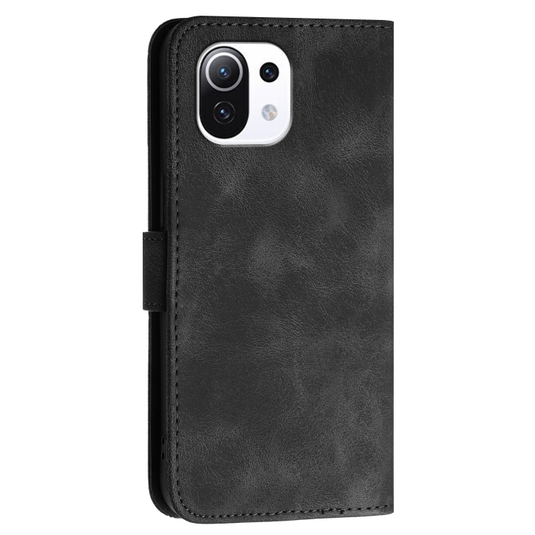 Funda de Cuero con Tapa y Cordón para Xiaomi Mi 11 Lite Yx0080 con Diseño En Relieve de Mariposa y Cuadrícula (Negro)
