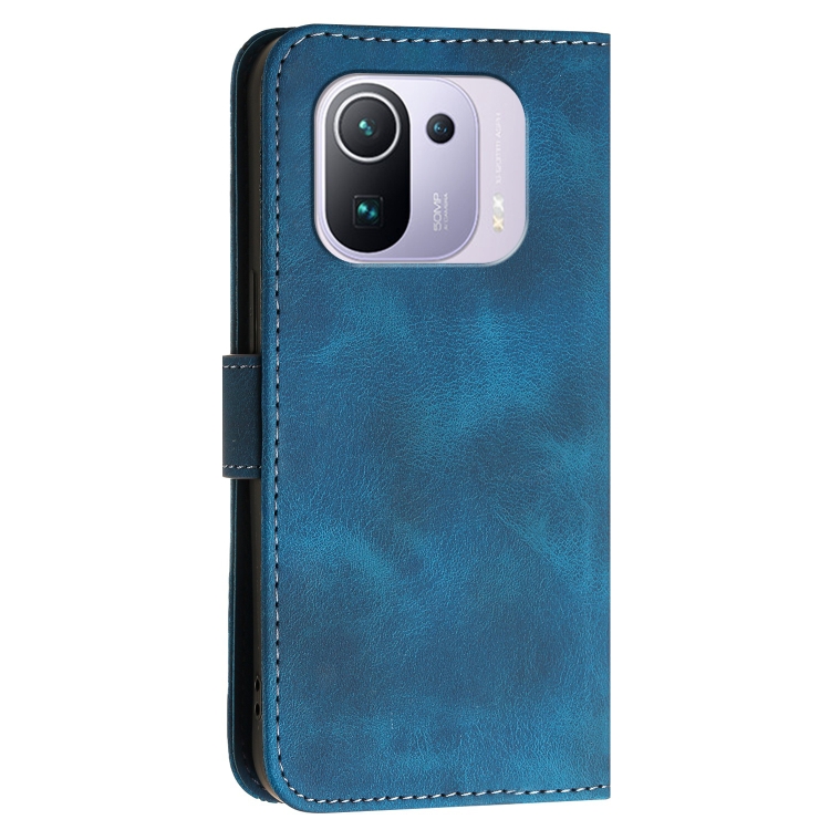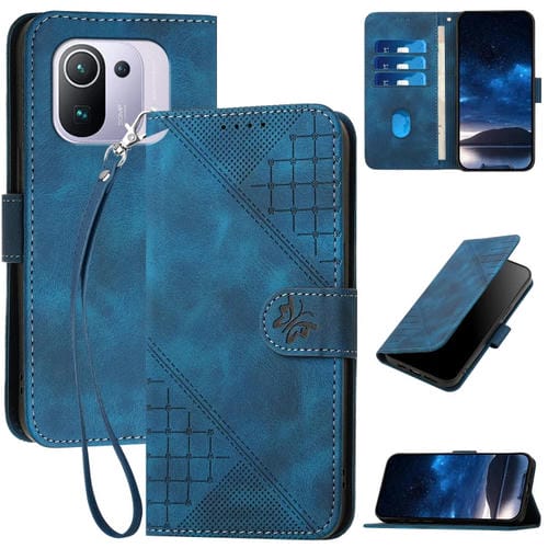 Funda de Cuero con Tapa y Cordón para Xiaomi Mi 11 Pro Yx0080 con Diseño de Mariposa En Relieve y Cuadrícula (Azul Oscuro)