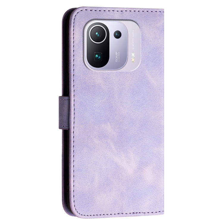 Funda de Cuero con Tapa y Cordón para Xiaomi Mi 11 Pro Yx0080 con Diseño de Mariposa En Relieve y Cuadrícula (Morado Claro)