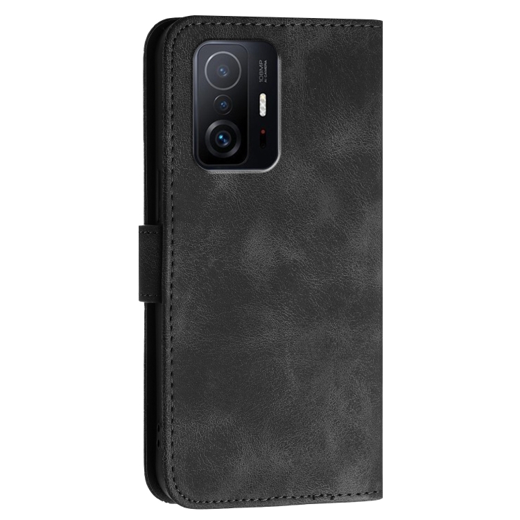 Funda de Cuero con Tapa y Cordón para Xiaomi Mi 11T Yx0080 con Diseño En Relieve de Mariposa y Cuadrícula (Negro)