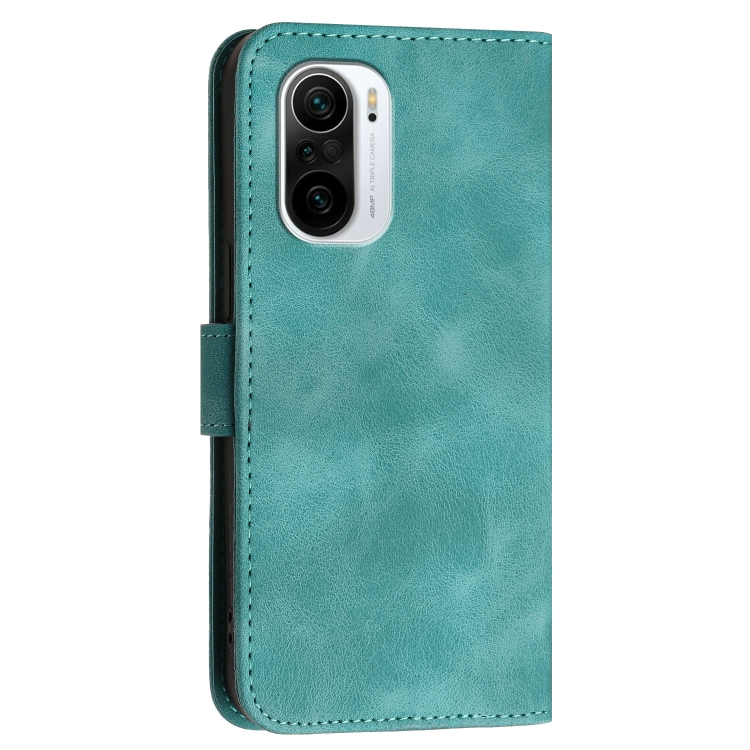 Funda de Cuero con Tapa y Cordón para Xiaomi Poco F3 Yx0080 con Diseño de Mariposa En Relieve y Cuadrícula (Azul Claro)