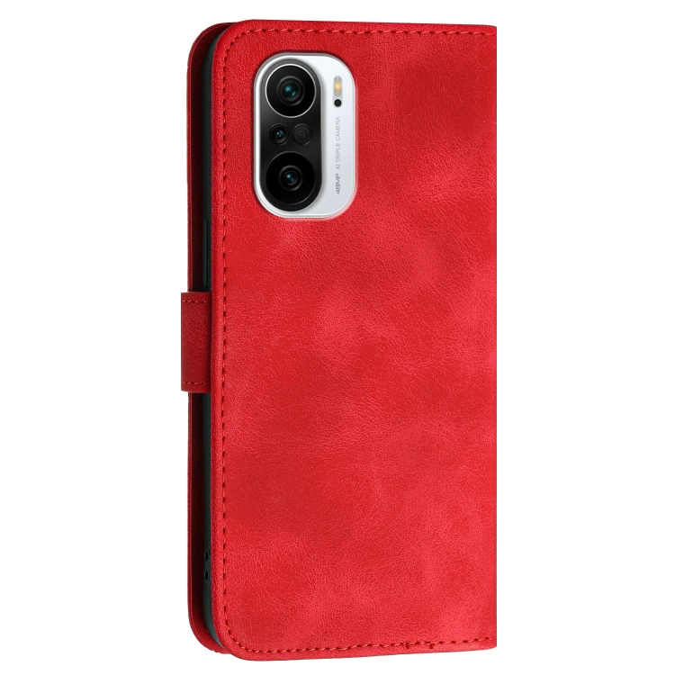 Funda de Cuero con Tapa y Cordón para Xiaomi Poco F3 Yx0080 con Diseño de Mariposa En Relieve y Cuadrícula (Rojo)