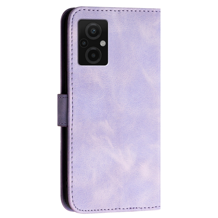 Funda de Cuero con Tapa y Cordón para Xiaomi Poco M5 Yx0080 con Diseño de Mariposa En Relieve y Cuadrícula (Morado Claro)