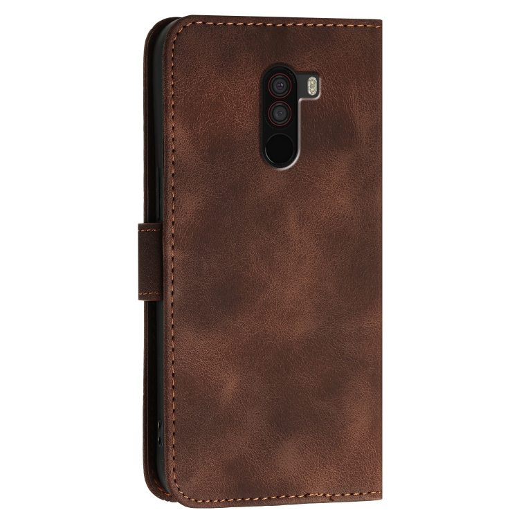 Funda de Cuero con Tapa y Cordón para Xiaomi Pocophone F1 Yx0080 con Diseño En Relieve de Mariposas y Cuadrícula (Café)