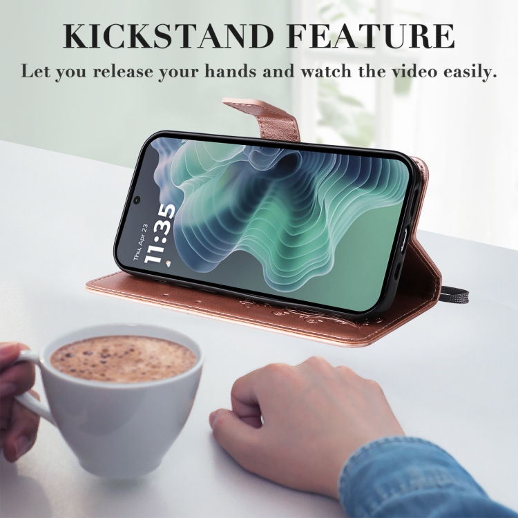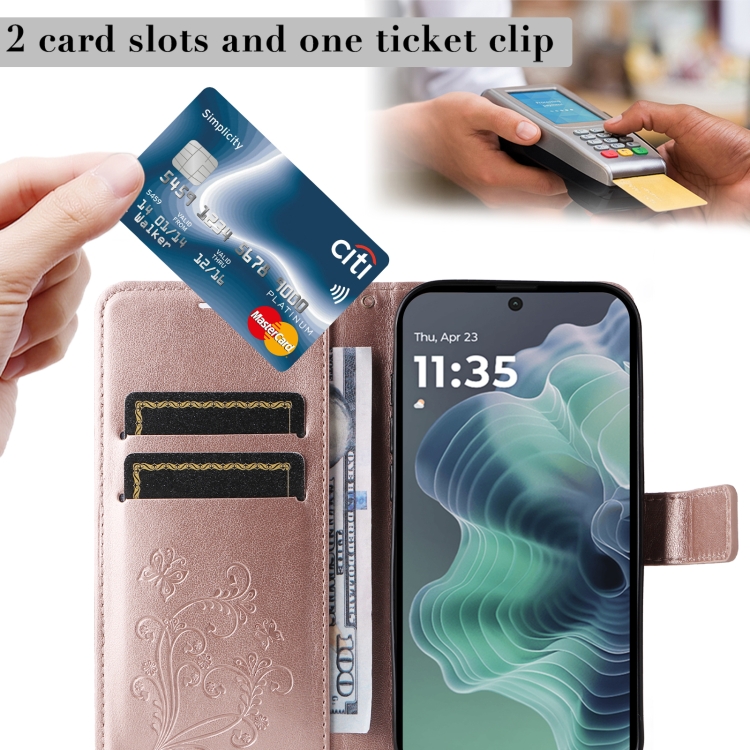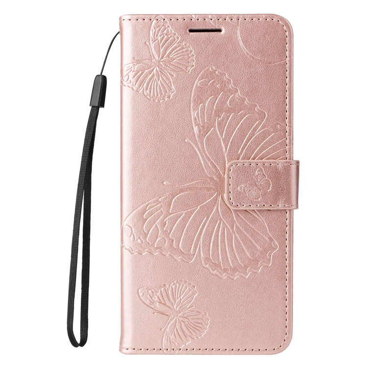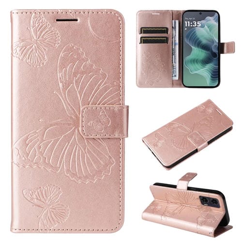 Funda de Cuero con Tapa y Mariposa en Relieve 3D para Motorola Moto G35 (Oro Rosa)