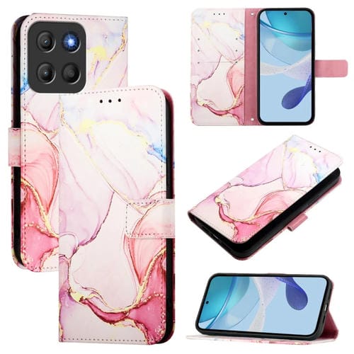 Funda de Cuero con Tapa y Diseño de Mármol para Motorola Moto G15 Pt003 (Oro Rosa)