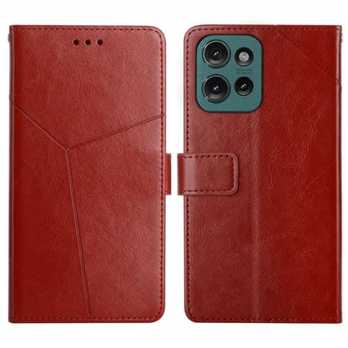 Funda de Cuero con Tapa y Patrón en Forma de Y para Motorola Moto G75 5G Ht01 (Marrón)
