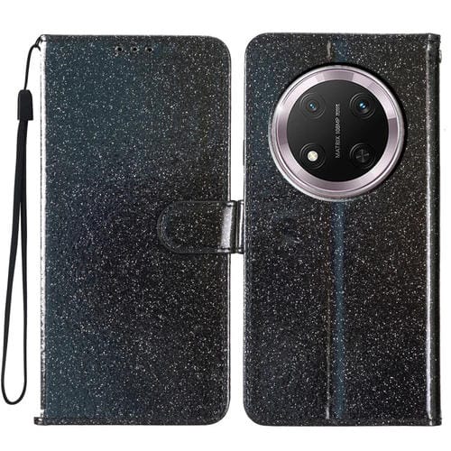Funda de Cuero con Tapa y Purpurina para Honor X9C 5G (Negra)