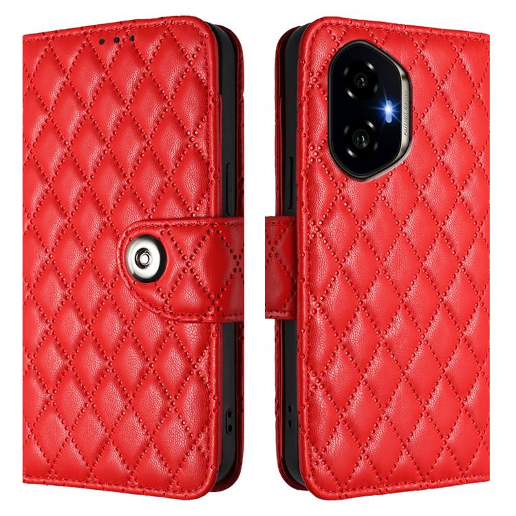 Funda de Cuero con Textura Rómbica y Cordón para Honor 300 5G (Roja)