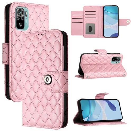 Funda de Cuero con Tapa y Textura Rómbica para Redmi Note 11 Se, India, con Cordón (Rosa)