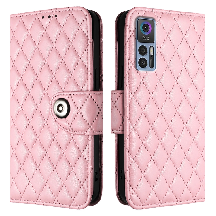 Funda de Cuero para Teléfono TCL 30 4G/30 5G/30 Plus con Tapa Textura Rómbica y Cordón (Rosa)