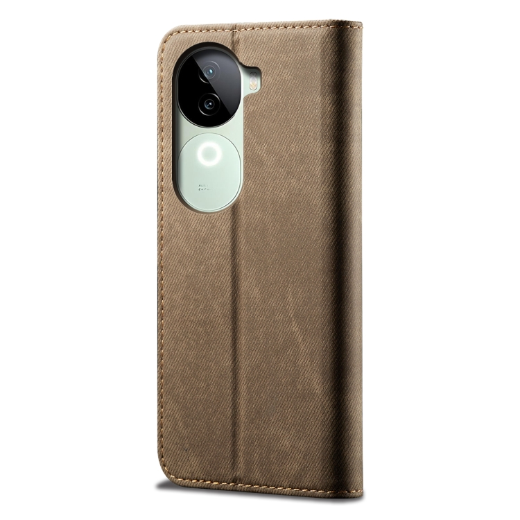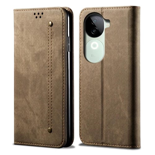 Funda de Cuero con Tapa y Textura Vaquera para Vivo V40E 5G India/Iqoo Z9S 5G (Caqui)