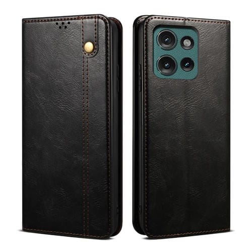 Funda de Cuero Motorola Moto G75 5G con Textura Crazy Horse y Cera de Aceite (Negro)