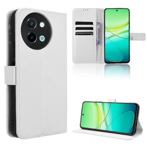 Funda de Cuero con Textura de Diamante para Vivo Y58 5G (Blanca)