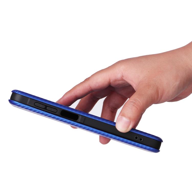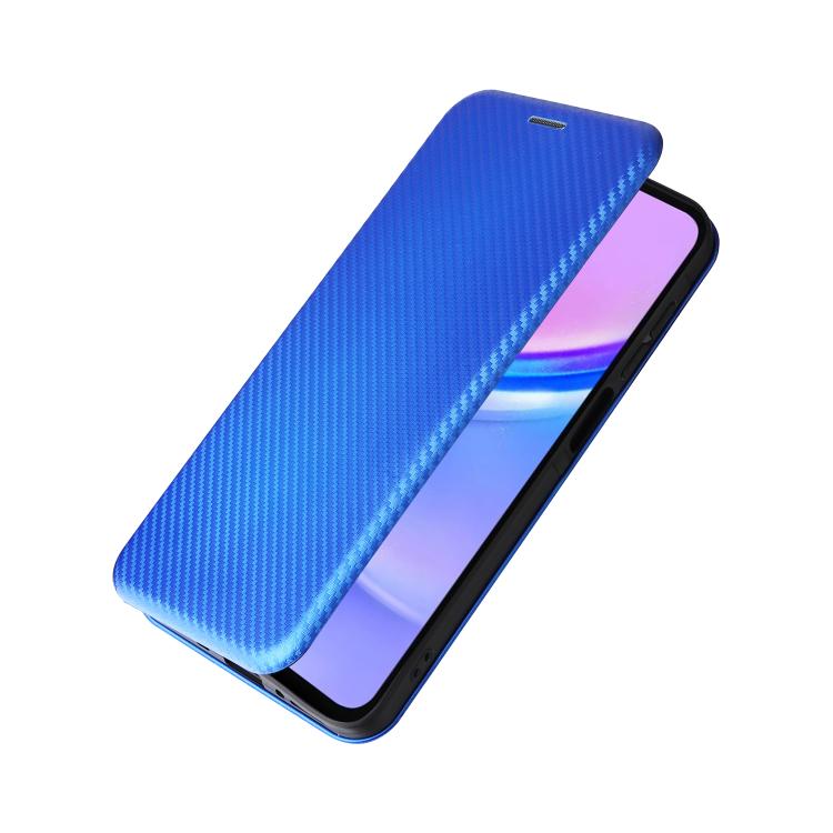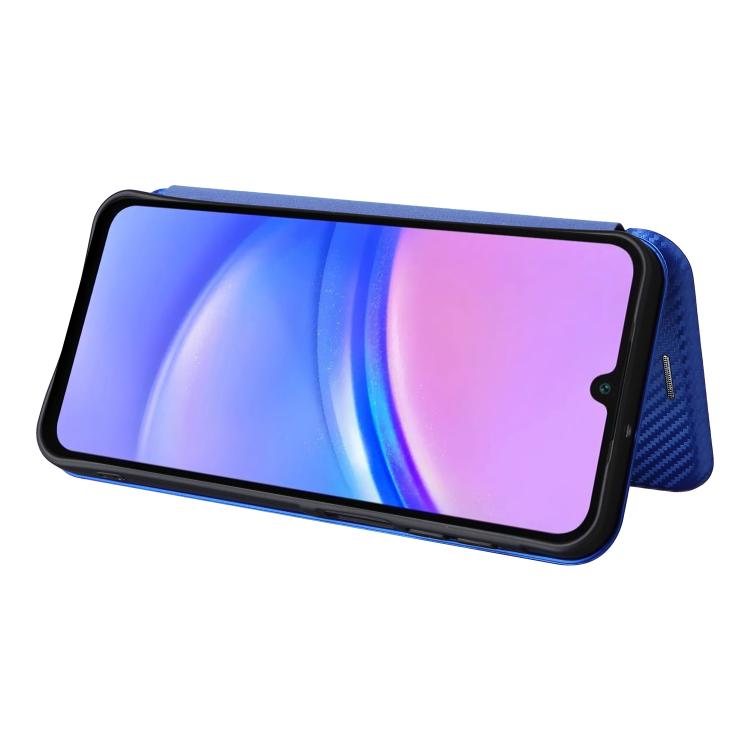 Funda de cuero con textura de fibra de carbono para Samsung Galaxy A17 5G (azul)