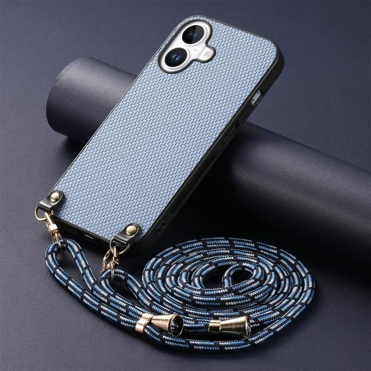 Funda de cuero con textura de fibra de carbono y correa cruzada para iPhone 17 (azul)