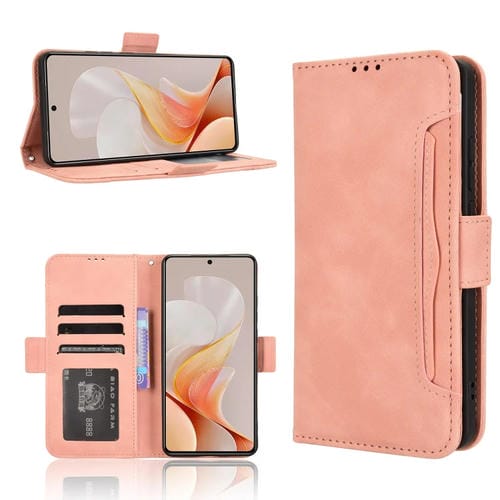 Funda de Piel con Textura de Becerro y Ranuras para Tarjetas para Vivo S19 5G (Rosa)