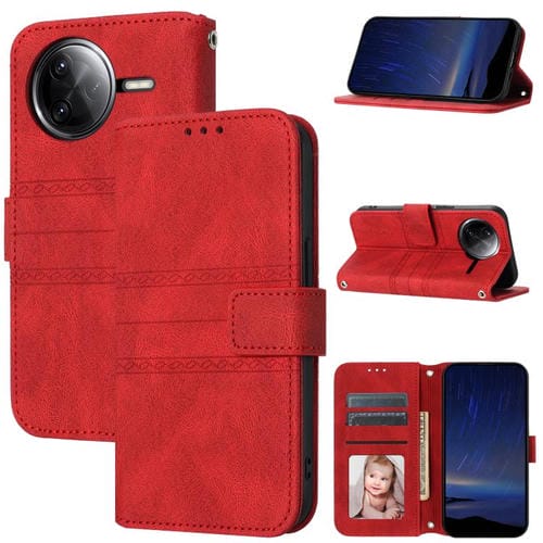Funda de Cuero con Textura de Piel de Serpiente con Rayas En Relieve para Redmi K80 5G/K80 Pro 5G (Rojo)
