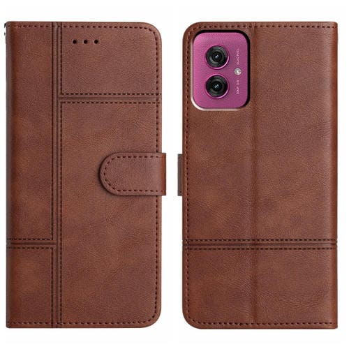 Funda de Cuero con Textura de Piel de Vaca y Costuras para Motorola Moto G55 (Café)