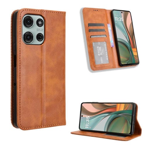 Funda de Cuero Motorola Moto G75 5G con Textura Retro y Hebilla Magnética (Marrón)