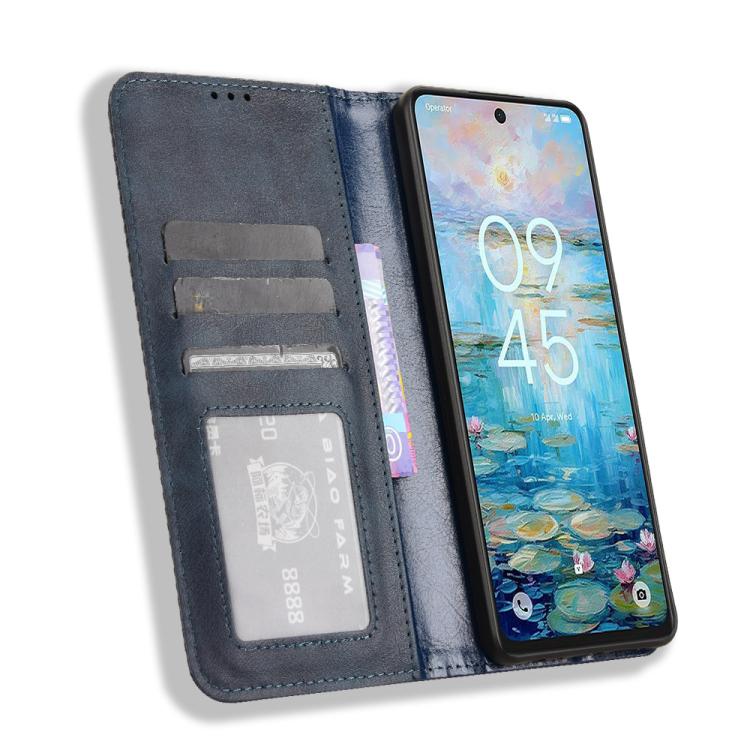 Funda de Cuero para TCL 50 Nxtpaper 5G y 50 Pro Nxtpaper 5G con Textura Retro y Hebilla Magnética (Azul)