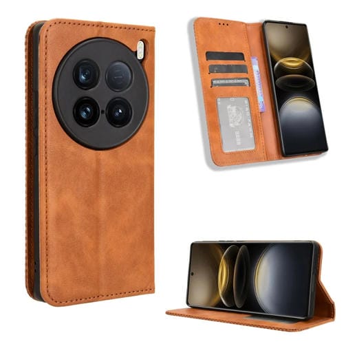 Funda de Cuero con Textura Retro y Hebilla Magnética para Vivo X100 Ultra 5G (Marrón)