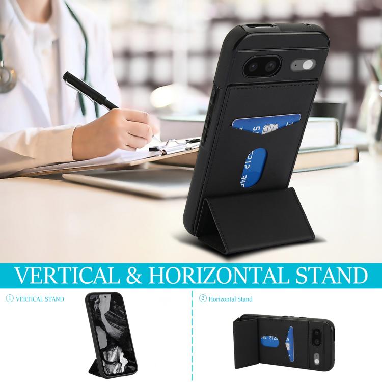 Funda de Cuero con Tres Pliegues para Google Pixel 8 con Ranura para Tarjetas (Negro)