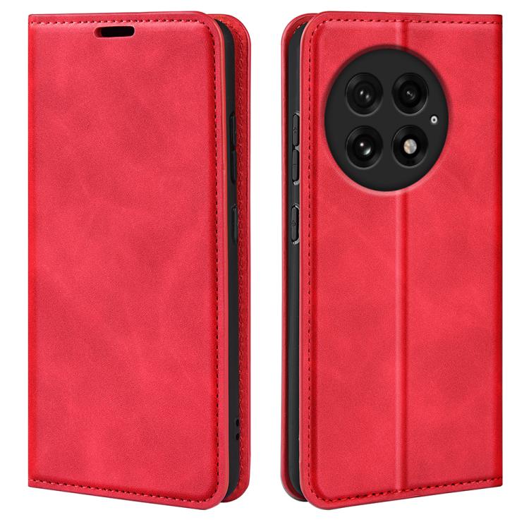 Funda de Cuero con Ventosa Magnética para OnePlus 13 Retro-Skin (Roja)