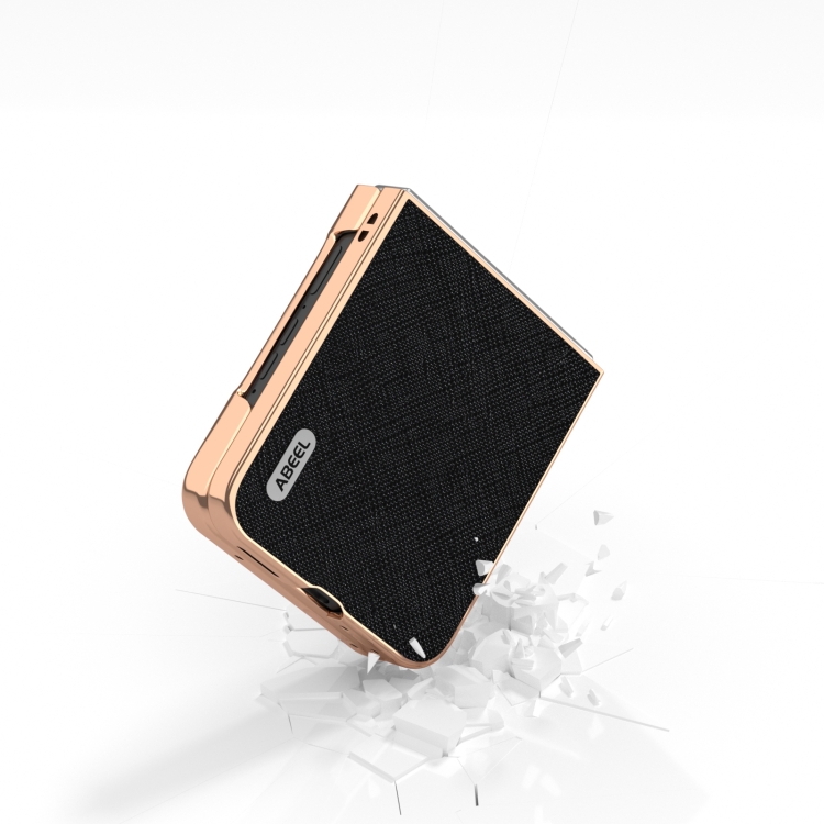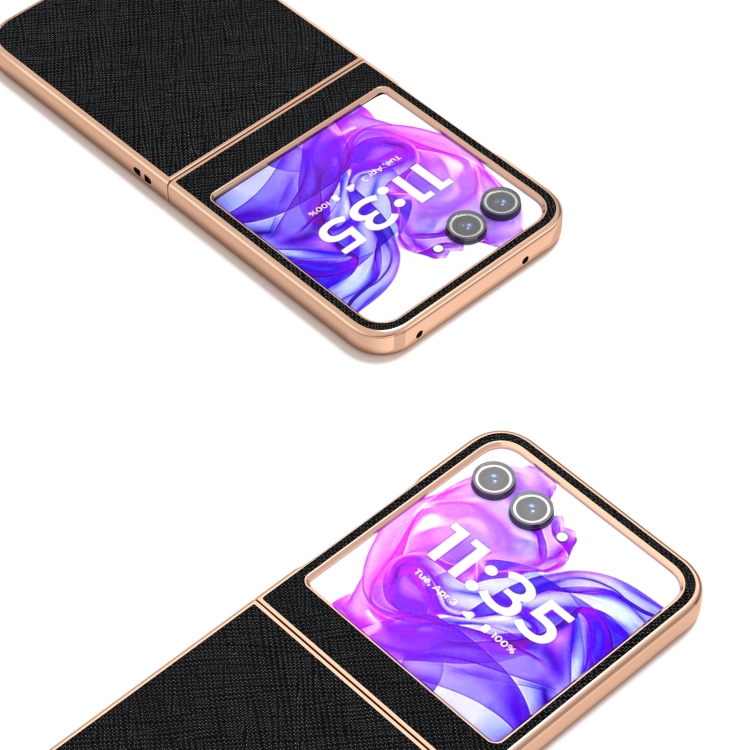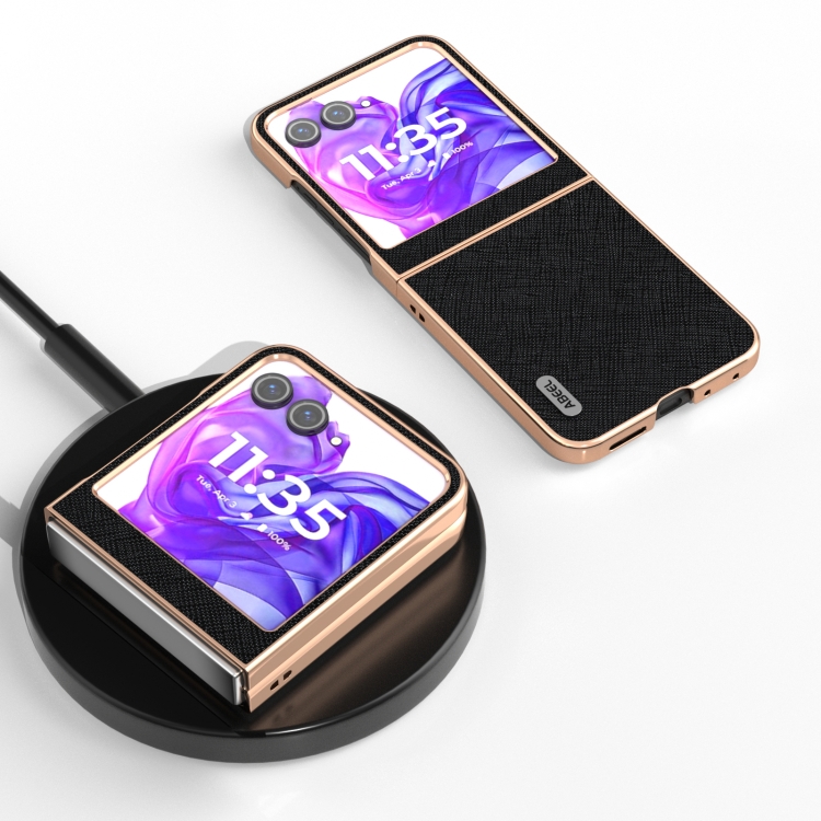 Funda de Cuero Genuino con Textura Cruzada y Marco Galvanizado para Motorola Razr 50 Abeel (Negro)
