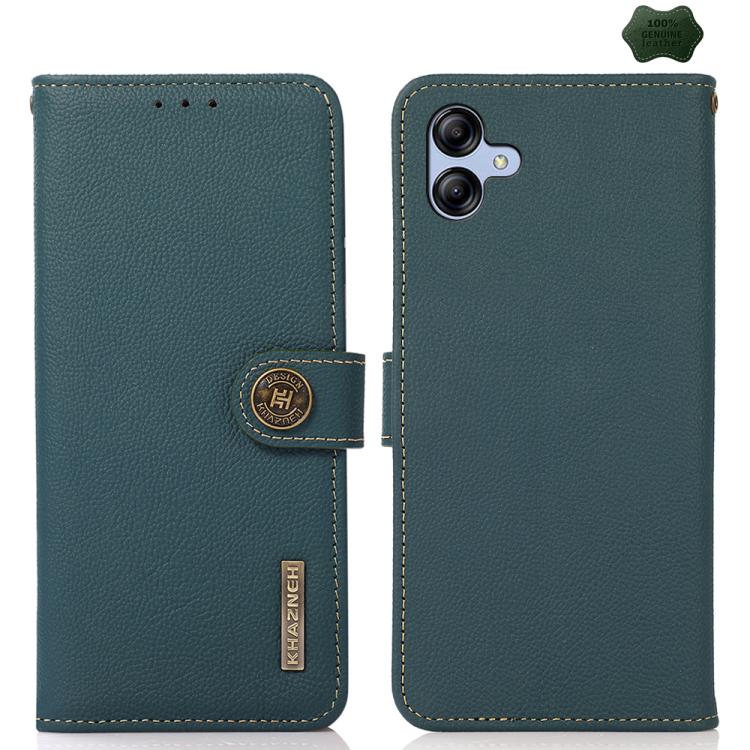 Funda de cuero genuino KHAZNEH Custer RFID para Samsung Galaxy A07 5G (verde)