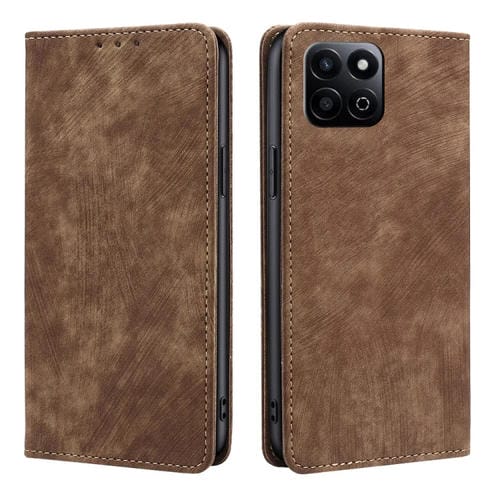 Funda de Cuero Magnética con Cepillo Antirrobo Rfid para Honor Play 60 Plus (Marrón)