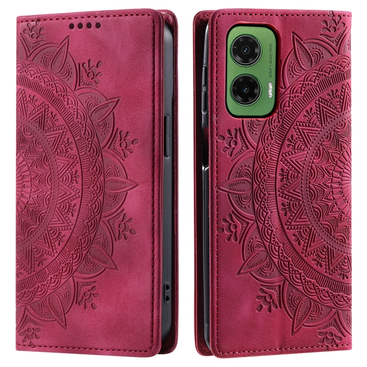 Funda de Cuero Magnética con Relieve Totem para Motorola Moto G35 (Rojo)