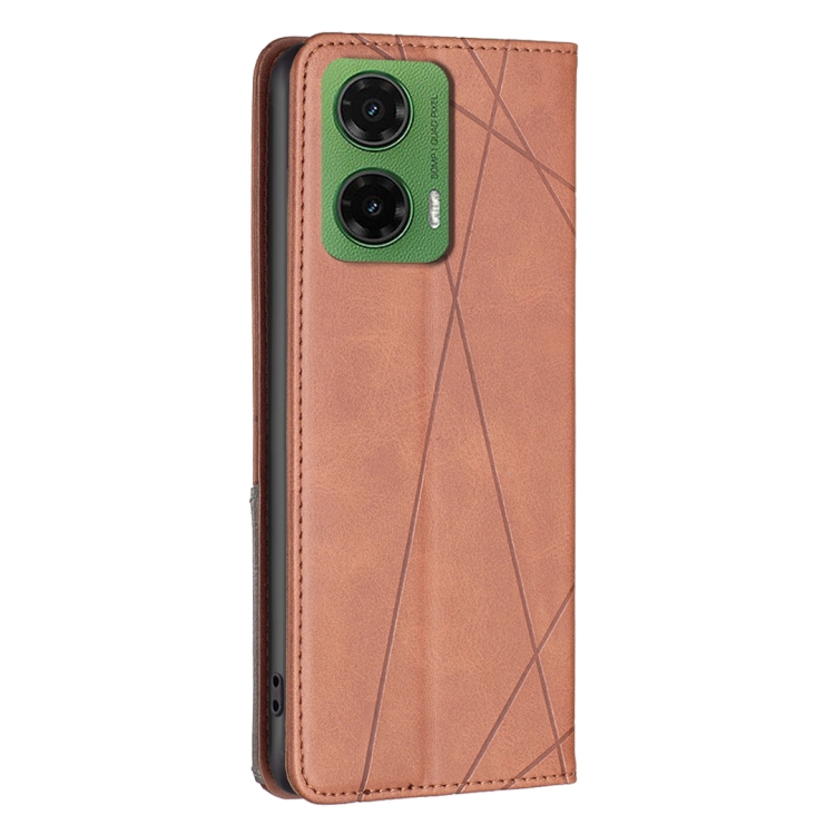 Funda de Cuero Magnética con Textura de Rombos para Motorola Moto G35 (Marrón)