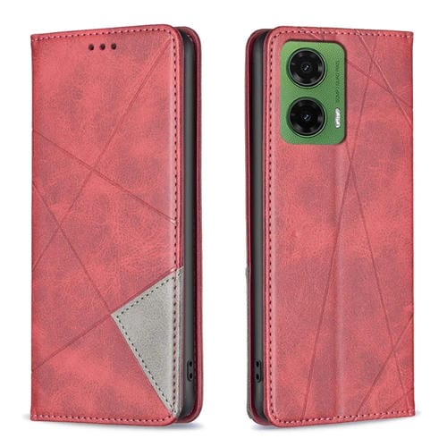 Funda de Cuero Magnética con Textura de Rombos para Motorola Moto G35 (Rojo)