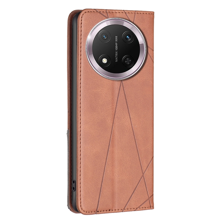 Funda de Cuero Magnética con Textura de Rombos para Honor X9C 5G (Marrón)