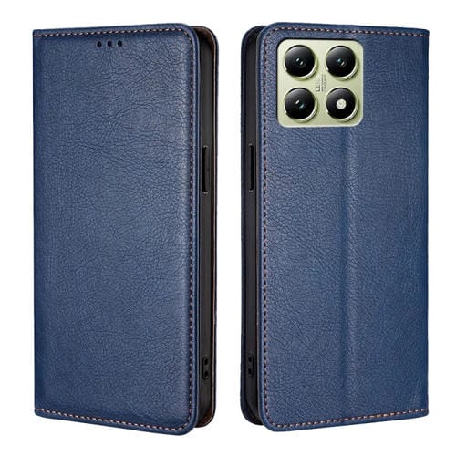 Funda De Cuero Magnética Para Teléfono Xiaomi 14T 5G Con Acabado Brillante Y Color Sólido (Azul)