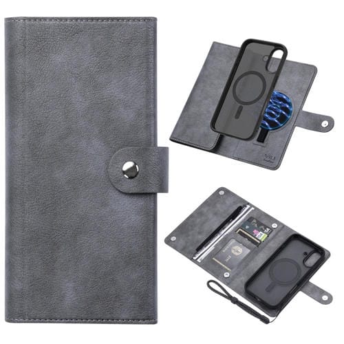 Funda de Cuero Magnética Rfid Magsafe Serie Vili Gvb para iPhone 16 Plus (Gris)