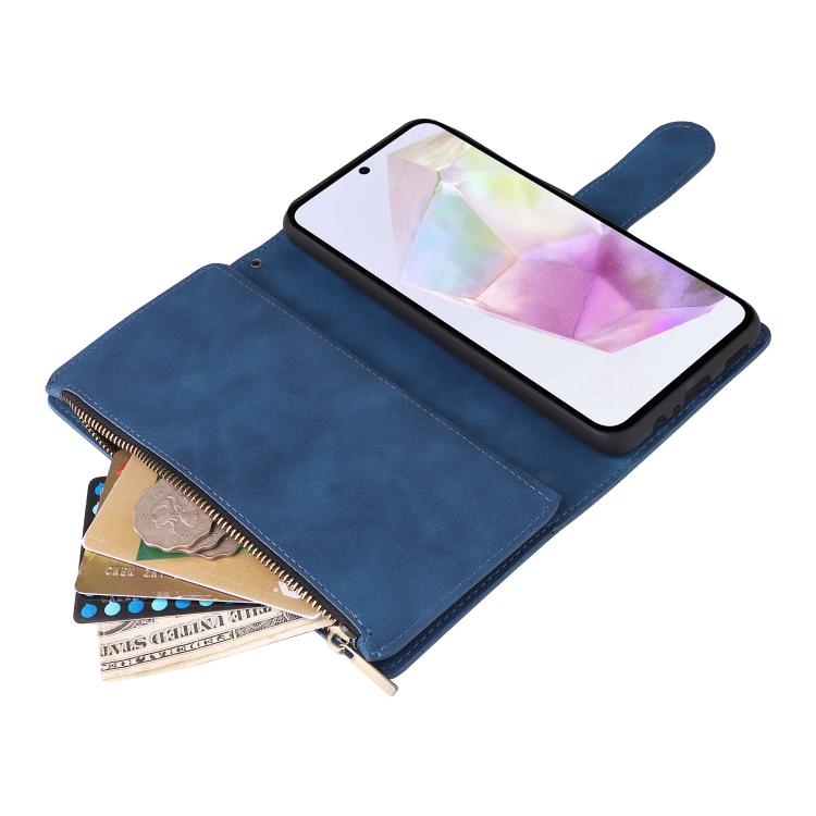 Funda de cuero multifuncional con cremallera esmerilada para Samsung Galaxy A17 5G (azul)
