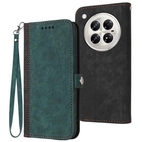 Funda de Cuero para Teléfono Infinix Zero 40 4G y 5G con Correa y Hebilla Doble Plegable (Verde Oscuro)