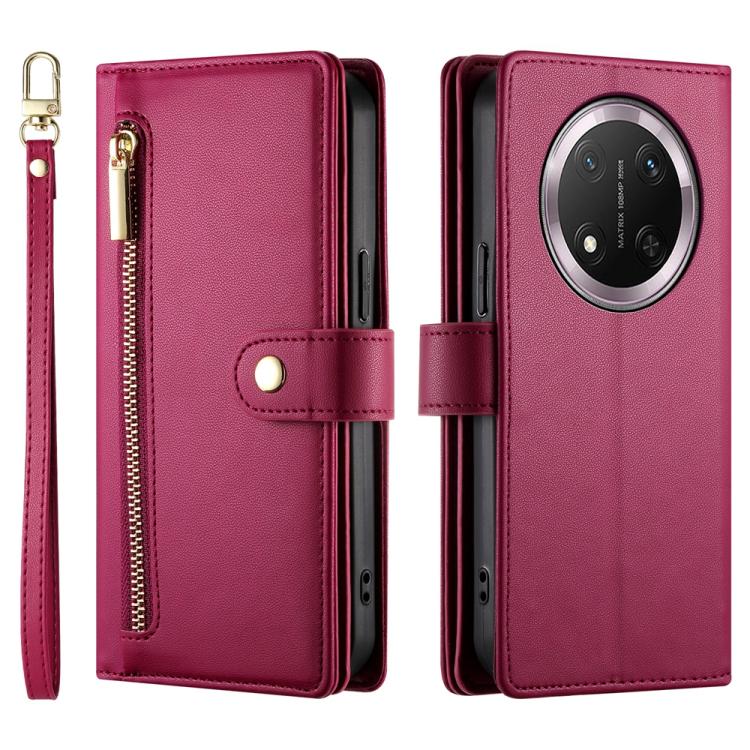 Funda de Cuero con Cremallera y Ranura para Tarjetas para Honor X9C Global y Magic7 Lite (Rojo)