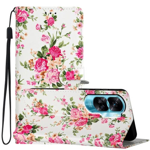 Funda de Cuero para Honor 90 Lite con Dibujo de Colores (Peonías)