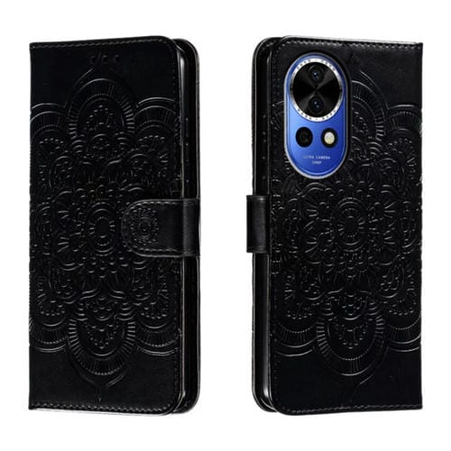 - 1x Funda de Cuero para Huawei Nova 12 con Estampado Mandala y Sol (Negra)